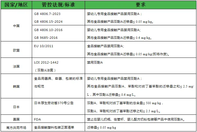 食品接觸材料中,目前雙酚A的管控狀態(tài)